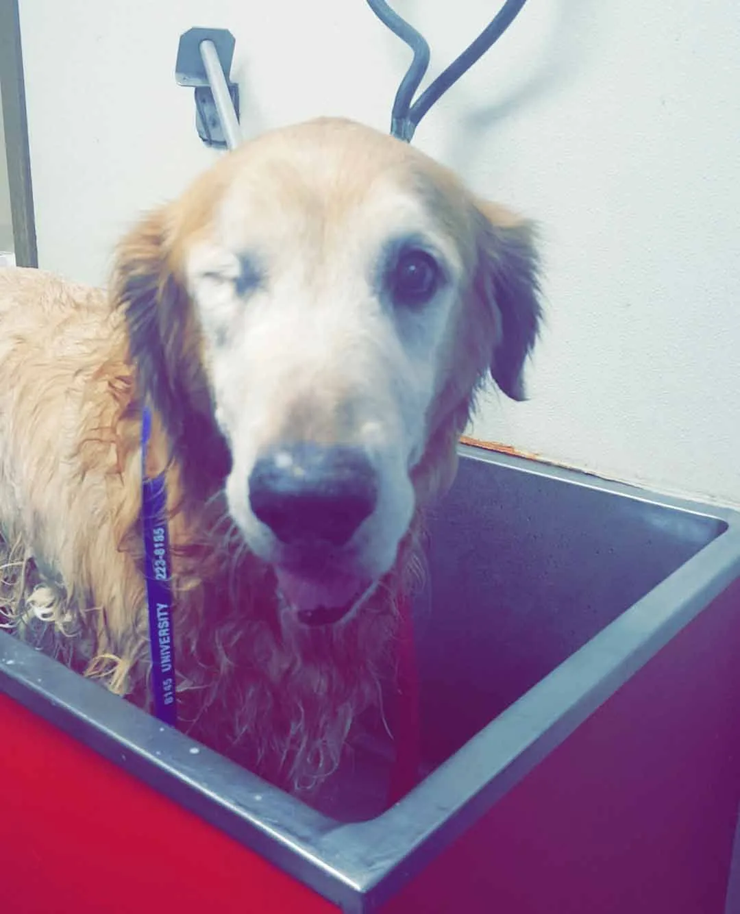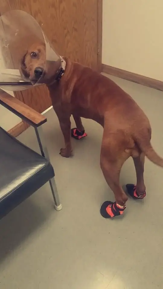 July '17 dog of the month! Meet Skye, she is a sweet girl who got all of her feet scraped up. She has been doing laser therapy treatments and improving everyday!
